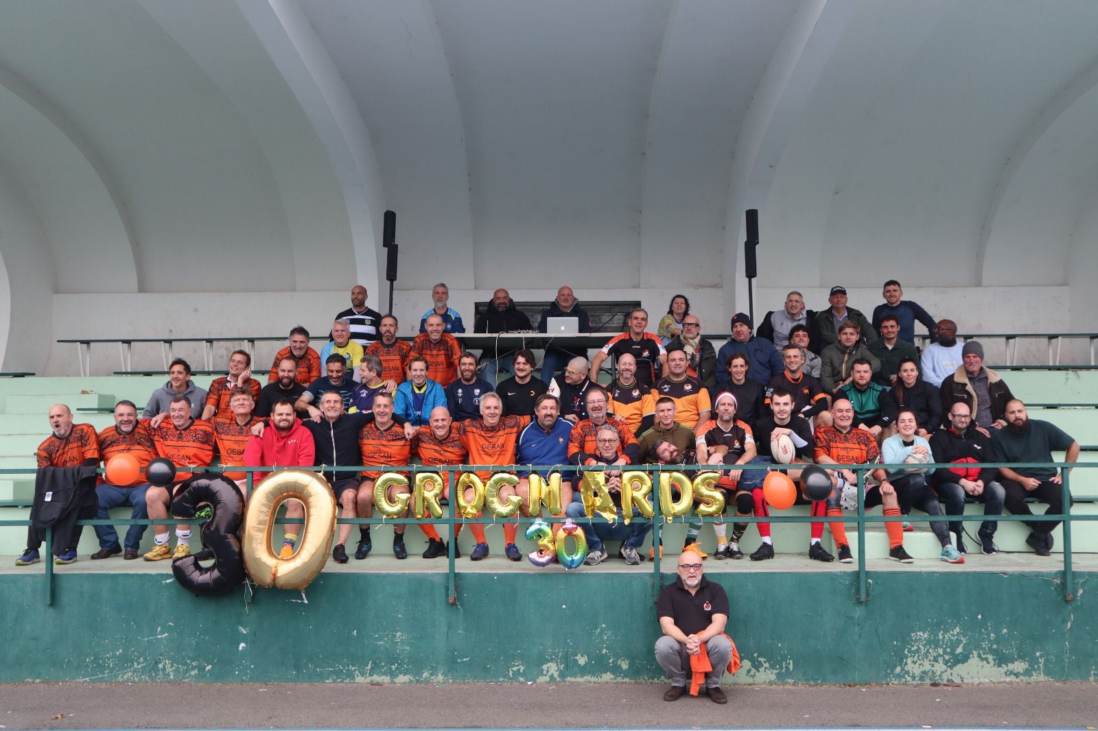 Joyeux anniversaire Les GROGNARDS! Le 13 décembre dernier au Stade Georges Lefèvre, notre équipe Rugby Loisirs a célébré sa 30ème année d’existence. Après les retrouvailles, un tournoi de touch rugby a rassemblé trois générations de Grognards renforcées par le MLSGP Five, l’Ecole de Rugby, Ovale & Sens… , des filles, des garçons, des jeunes et moins jeunes! Le maire de la Ville de Saint-Germain-en-Laye Arnaud Pericard nous a fait l’honneur de sa présence lors de la réception après tournoi. Merci aux sponsors Sports d'Epoque et Vins Grands Crus pour leur soutien aux Grognards!